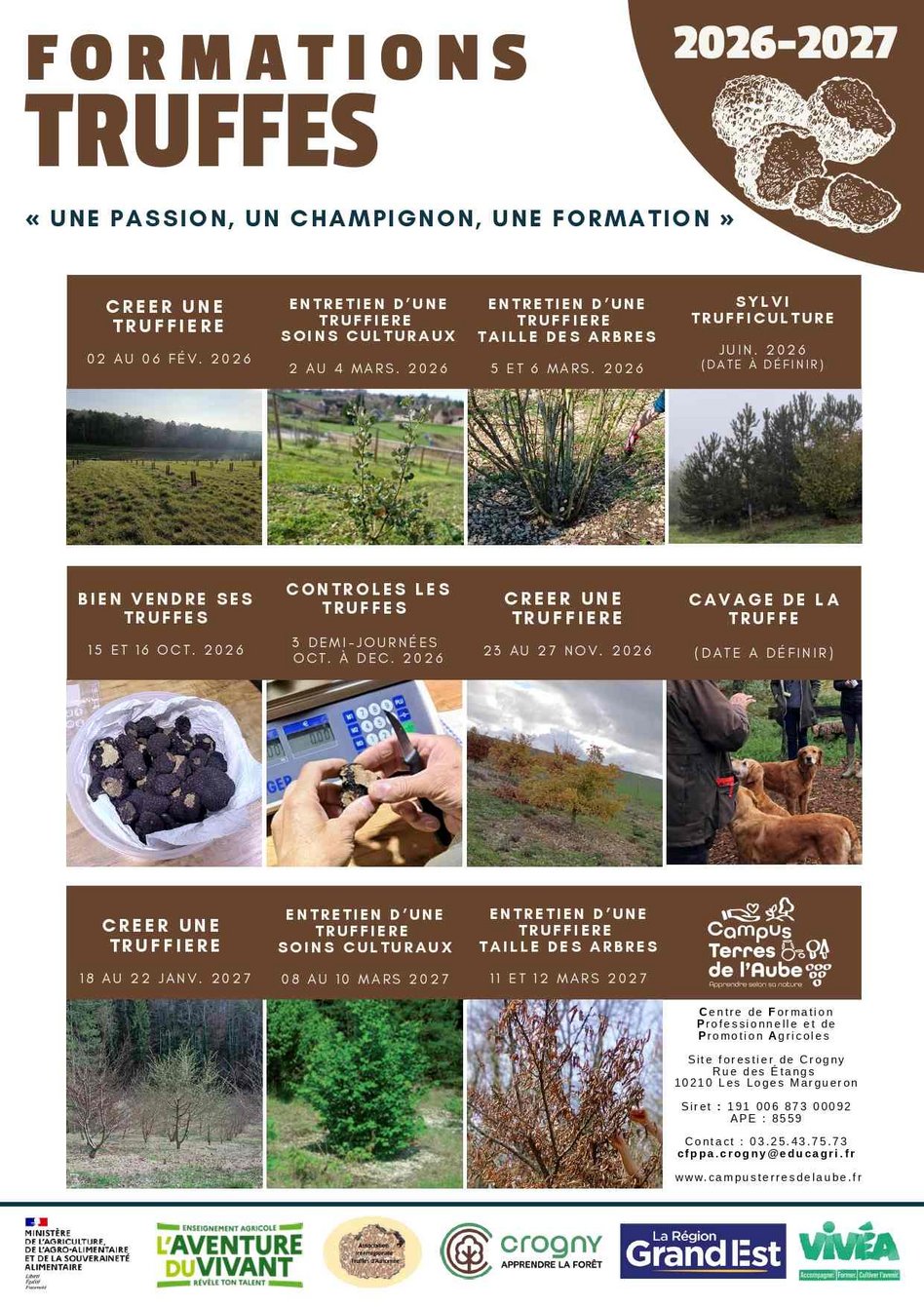 L’Association Interrégionale Truffes d’Automne (AITA) en partenariat avec le CFPPA de l’Aube (site de Crogny) vous présente son offre de formations trufficoles :